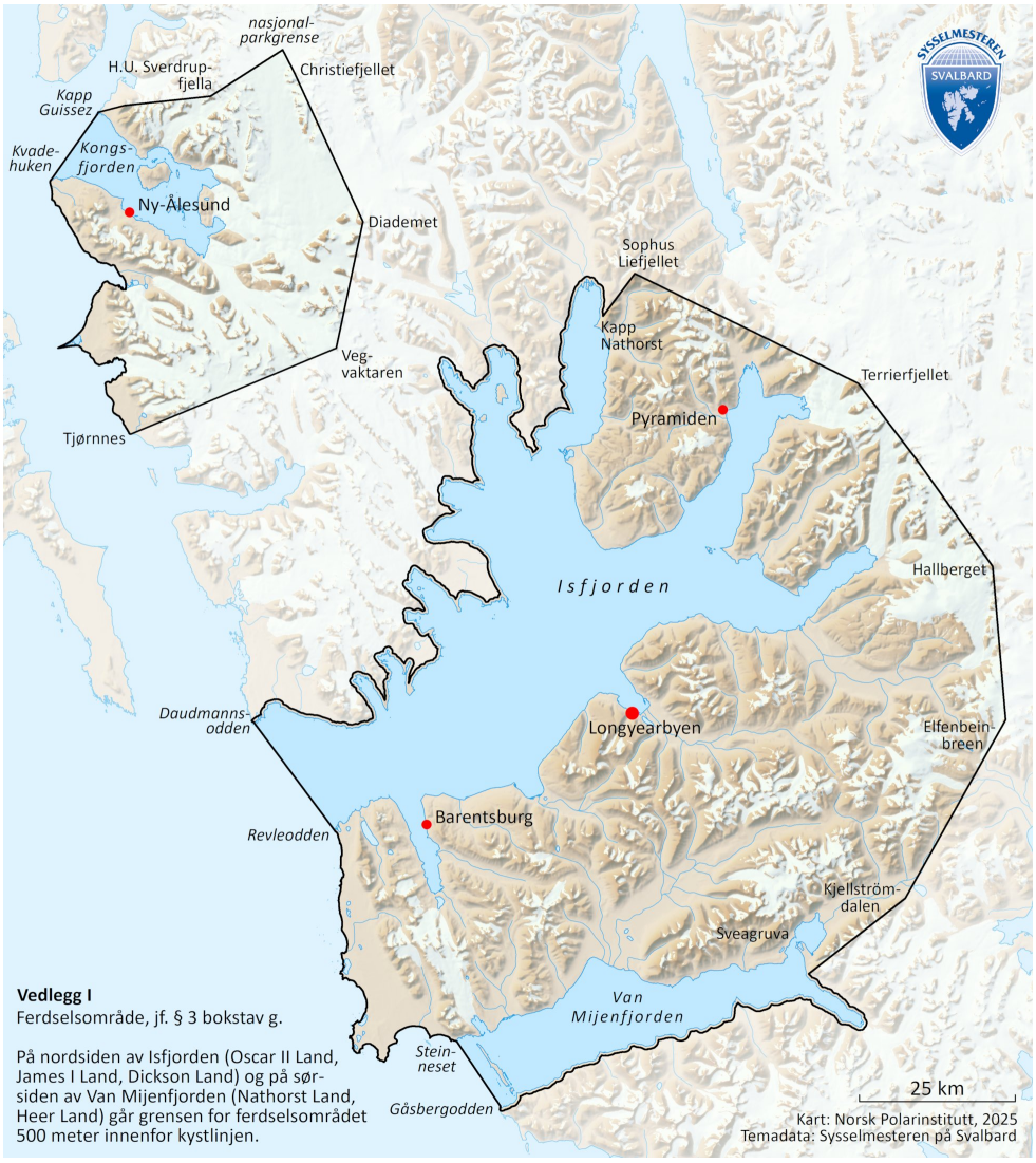 Når turistvirksomhet eller feltvirksomhet ferdes, driver aktivitet eller har opphold utenfor bebodd område, skal det fra 1. juli 2027 være med et forsvarlig antall godkjente Svalbardguider. En Svalbardguide er en person som veileder, følger eller på annen måte ivaretar deltakere under forberedelsen og gjennomføringen av ferdselen, aktiviteten eller oppholdet, og som er godkjent etter feltsikkerhetsforskriften. Med bebodd område menes sentrum av Longyearbyen, inkludert Svalbard lufthavn Longyear, Pyramiden, Barentsburg og Ny-Ålesund.