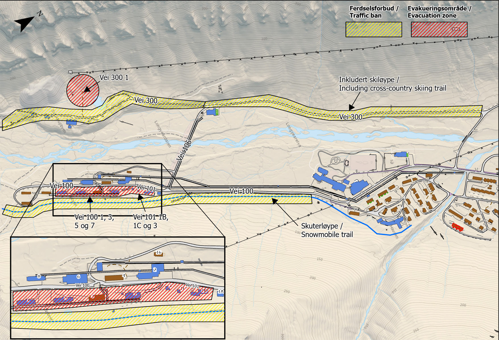 - Vei 300 stenges fra kl. 23:00 i kveld, lørdag, fra krysset Vei 501 og opp til Sverdrupbyen. Ferdsels- og oppholdsforbudet gjelder også for skiløype-traseen på oversiden av Vei 300.